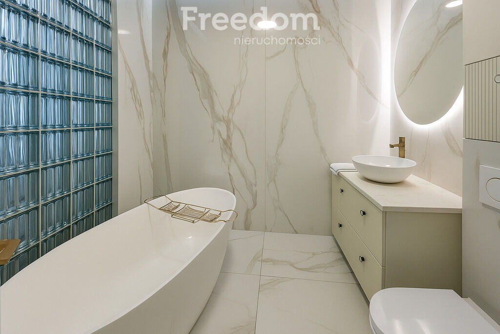 - Łazienka z wysokiej klasy armaturą i kamieniem naturalnym
