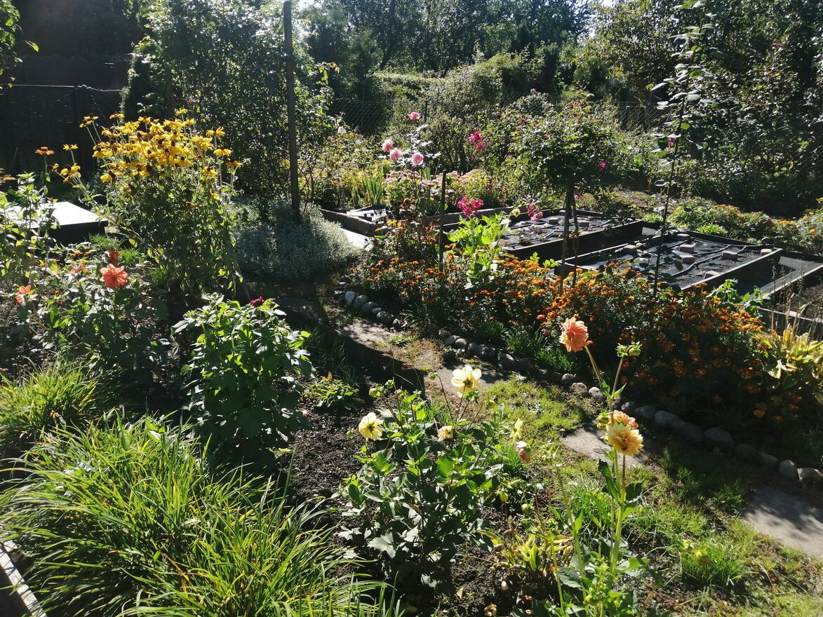 * liczne wieloletnie kwiaty zdobiące ogród co sezon