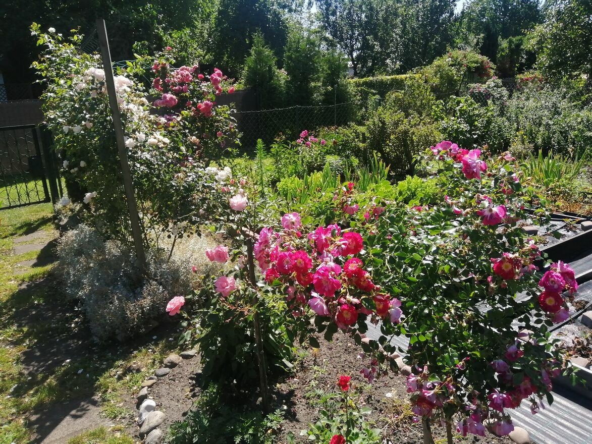 * krzewy ozdobne: forsycja, róże