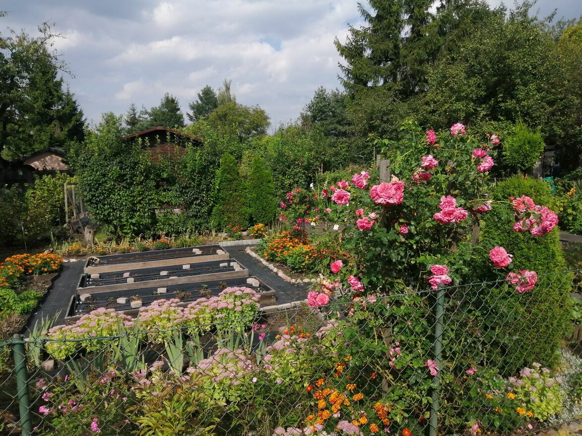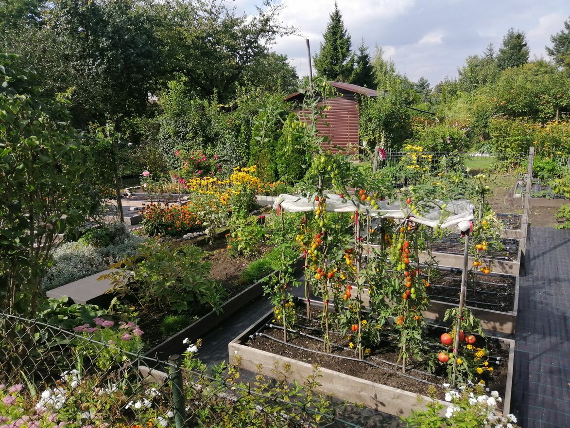 - infrastruktura ogrodowa - podwyższone, drewniane skrzynie do uprawy warzyw wraz z systemem nawadniania kropelkowego (może wymagać drobnych napraw po zimie); w grządkach były przez wiele lat uprawiane warzywa w sposób ekologiczny, bez użycia sztucznych nawozów