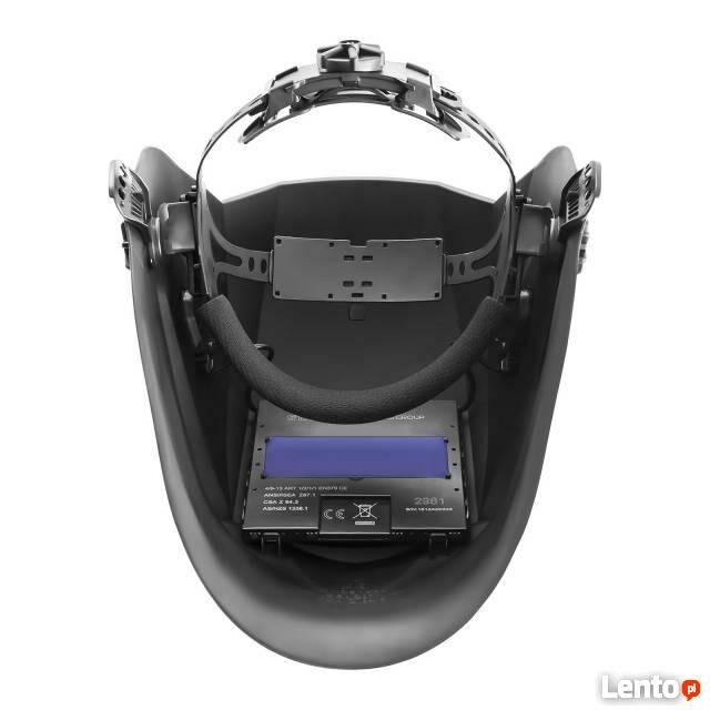 Hełm spawalniczy wykonany został z lekkiego a jednocześnie wytrzymałego tworzywa sztucznego o efektownym designie. Waży jedynie 500 g, dzięki czemu nie muszą Państwo obawiać się jakichkolwiek ograniczeń czy dolegliwości bólowych podczas wykonywania prac. Dodatkową zaletą oferowanej maski jest możliwość jej maksymalnego dopasowania do kształtu głowy operatora, w tym ustalenie odległości wizjera od twarzy. Maska wyposażona została dodatkowo w wewnętrzną osłonę zapobiegającą spływaniu potu z czoła do oczu.