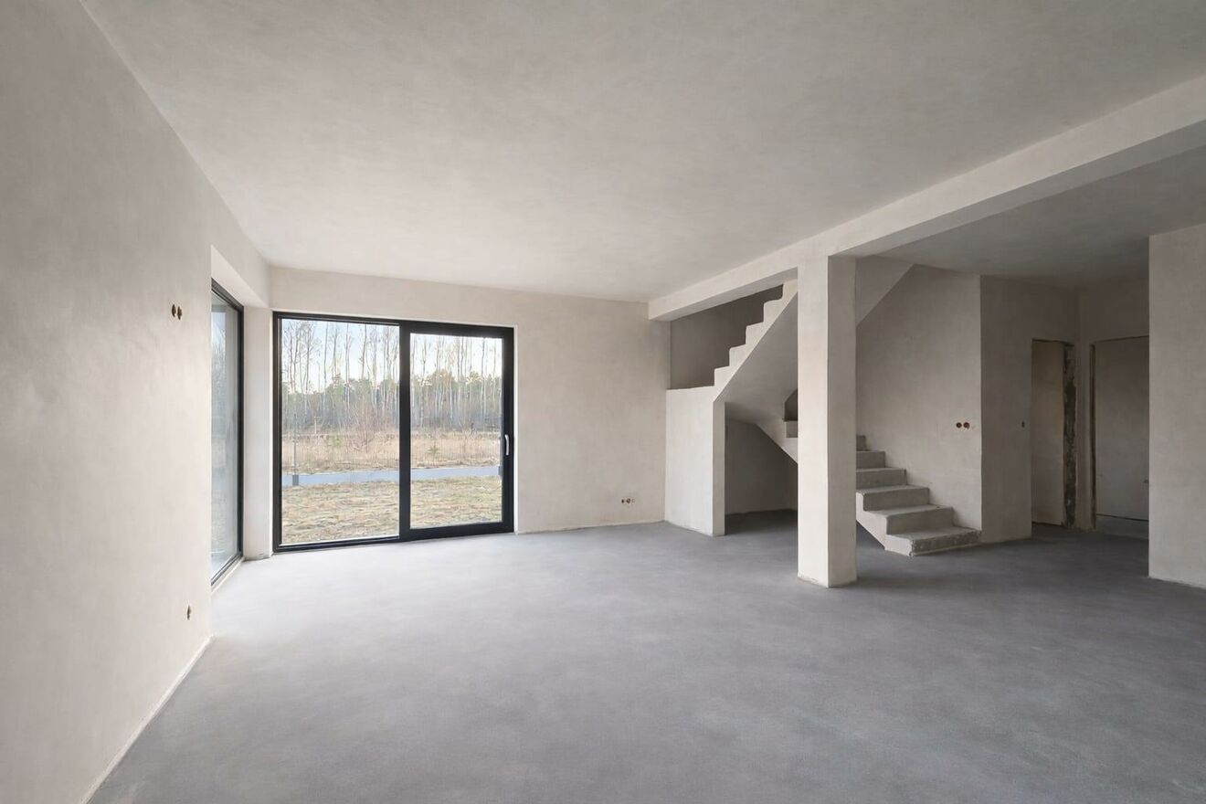 Dom został wzniesiony w technologii tradycyjnej z wysokiej jakości pustaka ceramicznego Porotherm (25 cm) i solidnie ocieplony warstwą styropianu 2025 cm, co przekłada się na komfort cieplny i niższe koszty eksploatacji. Zastosowano strop Ackermana oraz nowoczesne okna trzyszybowe, zapewniające dobrą izolację akustyczną i termiczną.