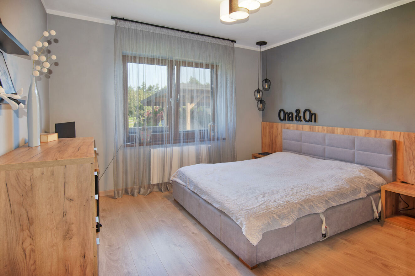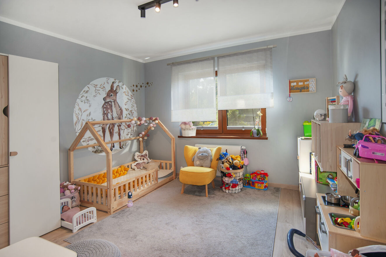 - 3 ustawne pokoje - obecnie urządzone jako sypialnia rodziców oraz dwa pokoje dziecięce,