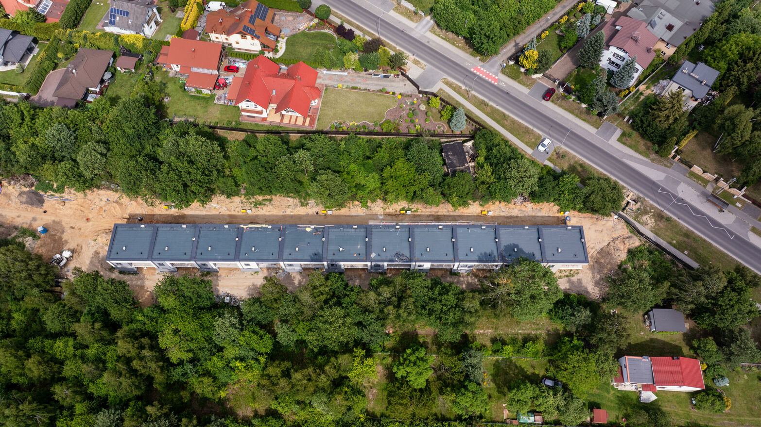 Otoczenie z klarownym planem zagospodarowania przestrzeni wyłącznie niską zabudową.