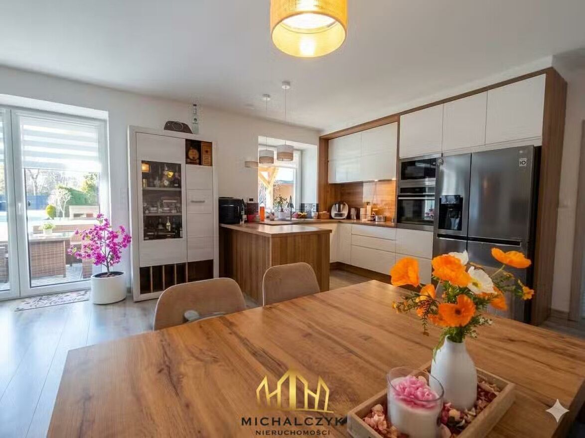 Na sprzedaż wyjątkowy, nowoczesny dom o powierzchni 100 m, położony na zadbanej i w pełni zagospodarowanej działce o powierzchni 617 m. Nieruchomość została zaprojektowana tak, aby zapewnić maksymalną wygodę, przestrzeń i prywatność. To idealne miejsce dla osób, które cenią spokojną okolicę, wysoką funkcjonalność oraz możliwość relaksu zarówno w domu, jak i na świeżym powietrzu. Ogromnym atutem jest zadaszona strefa wypoczynkowa oraz duża, otwarta przestrzeń dzienna, która tworzy serce całego domu.Dom: