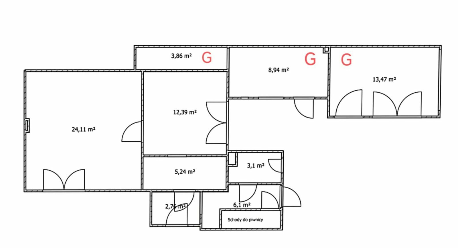 piwnica pod częścią budynku – przestrzeń gospodarcza / magazynowa.