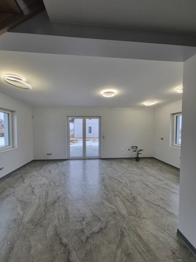 - salon z wyjściem na taras, połączony z kuchnią,