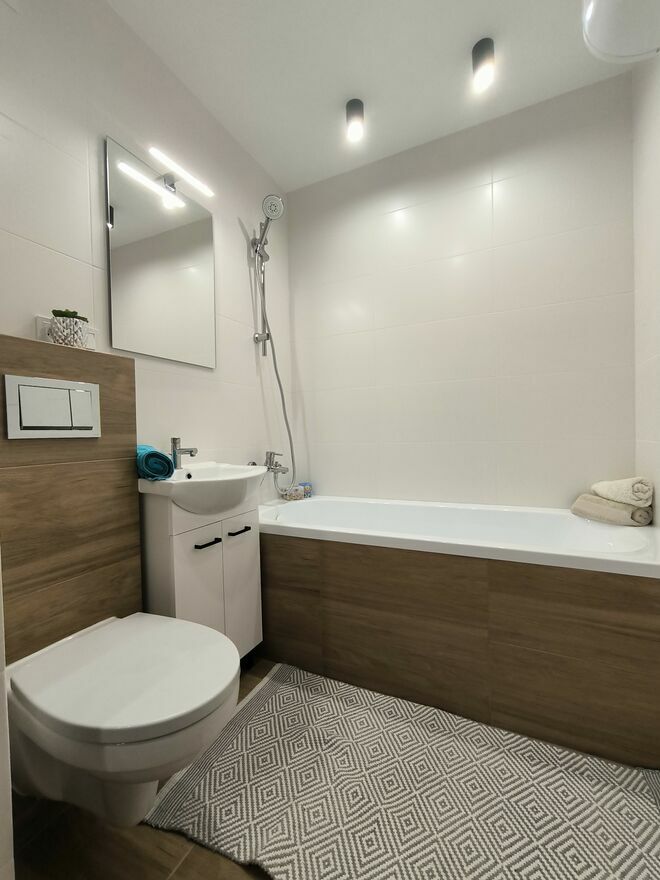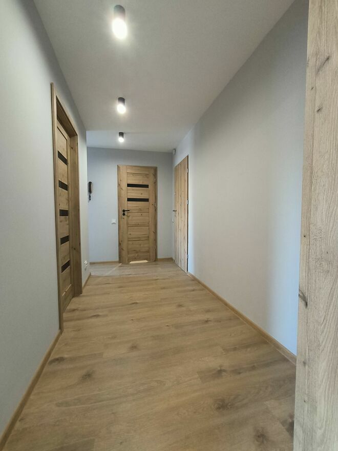 Duży salon z balkonem. Spora sypialnia. Elegancka łazienka w jasnej glazurze z wanną oraz ustawny przedpokój z miejscem na dużą szafą pod zabudowę. Nowe drzwi wewnętrzne i zewnętrzne.