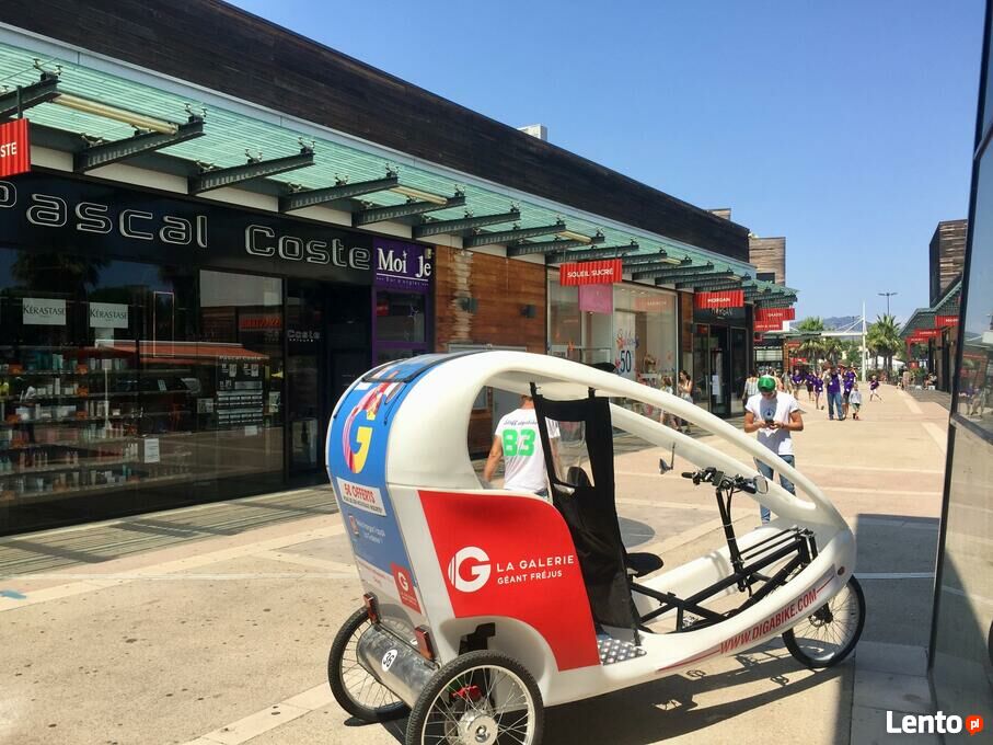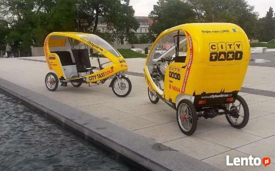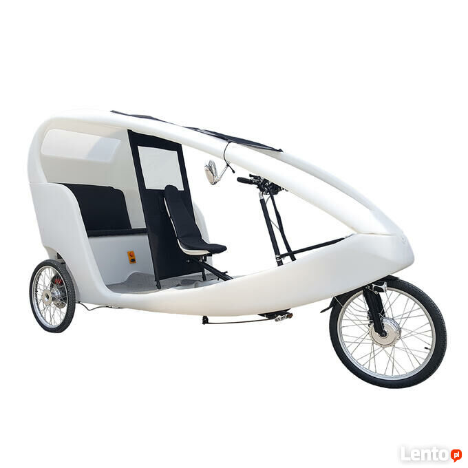 Pojazd typu riksza VELEX trike TAXI. Jej smukła konstrukcja świetnie sprawdzi się jako nietuzinkowy sposób transportu. VELEX trike TAXI posiada wspomaganie elektryczne, co powoduje, że kierowca nie musi używać dużej siły podczas jazdy. Wspomaganie jest zrealizowane bezszczotkowym silnikiem elektrycznym o mocy szczytowej 500W i regulowane na 3 poziomach. Silnik zasilany jest akumulatorem 48V 32Ah co pozwala przejechać ok. 80 km.Pojazd VELEX trike TAXI to rozwiązanie idealne dla biznesu. Pojazdem takim będziemy mogli wjechać do Stref Czystego Transportu - specjalnie wyznaczonych miejsc gdzie poruszać mogą się jedynie zeroemisyjne pojazdy niezanieczyszczające środowiska spalinami. W większym aglomeracjach o dużym znaczeniu turystycznym, strefy takie powstają najczęściej w zabytkowych częściach miast, gdzie zbiera się najwięcej turystów. Transport przyjezdnych może być połączony z ofertą przewodnika po mieście, który będzie przystawał pod najciekawszymi zabytkami, pokrótce przedstawiając najciekawsze fakty z nimi związane.
