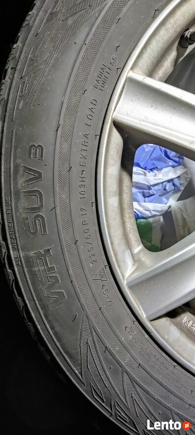 sprzedam komplet x4 szt Nokian 225/60 r17 felgi z oponami zimowymi używanymi jeden sezon, przechowywane w zamkniętym magazynieodbiór osobisty