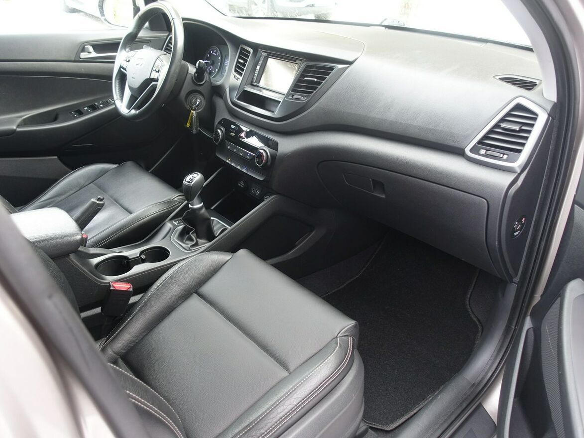 Oferowany HYUNDAI TUCSON posiada dynamiczny, sprawdzony i oszczędny silnik 1,6 BENZYNOWY o mocy 132KM. Norma Emisji Spalin EURO 6 Jest bogato wyposażony, posiada m.in. ABS, ESP, EL. SZYBY I LUSTERKA, KLIMATYZACJĘ, ALUFELGI, TEMPOMAT, BLUETOOTH, NAWIGACJĘ, SYSTEM HANDS FREE, CZUJNIK ZMIERZCHU, PARKTRONIK, ISOFIX, SKÓRZANĄ TAPICERKĘ, RELINGI, LEDY DO JAZDY DZIENNEJ, 6 BIEGÓW, 6XPP, DWA KLUCZYKI.