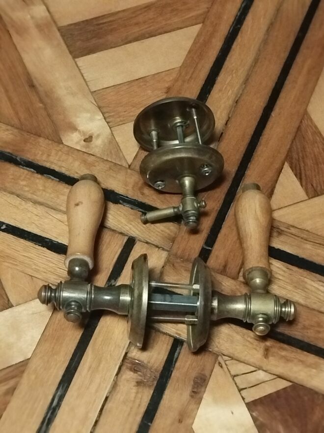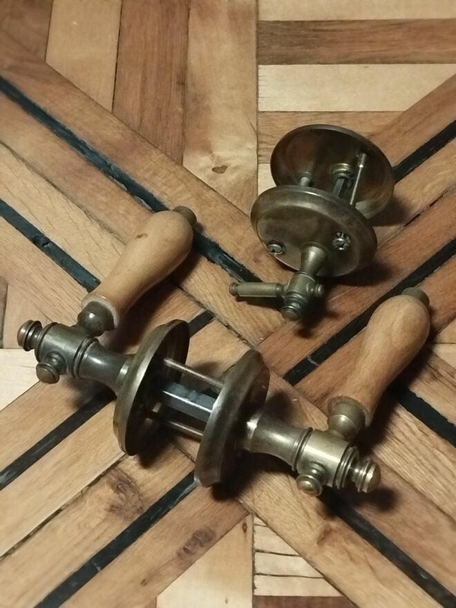 Przedmiotem aukcji jest klamka drzwiowa retro łazienkowa mosiężna PRLCena za komplet 180 zł