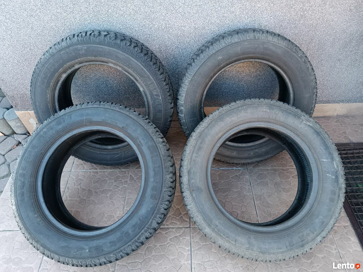 Komplet (4 sztuki) - Opony 15 cali Gislaved Frost 65T - rozmiar 195/65/15 - używane, sprawne. Rok produkcji 1997. Bieżnik 5,5 - 6,5 mm.Opony pozyskane z auta osobowego, ale jakieś takie dziwne - jakby terenowe? do błota? do piachu? Nie wiem co to.