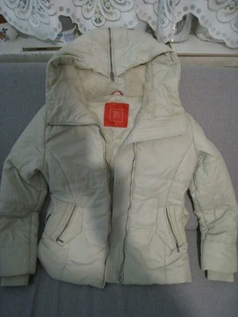 Sprzedam widoczną na zdjęciach Kurtkę ocieplaną S-TIFFI w kolorze jasny beż. Kołnierz na futerku - zamek, można zrobić kaptur.Wymiary: