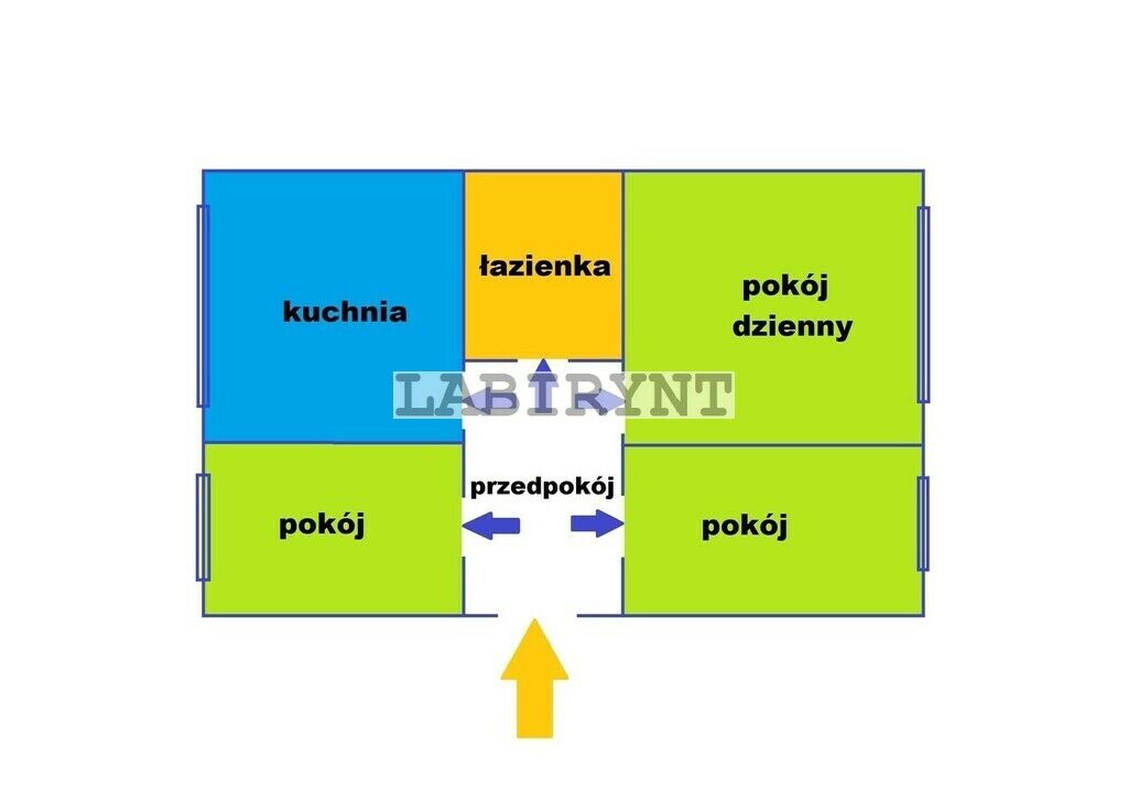 Rozkład pomieszczeń: duży pokój dzienny, 2 sypialnie, szeroka