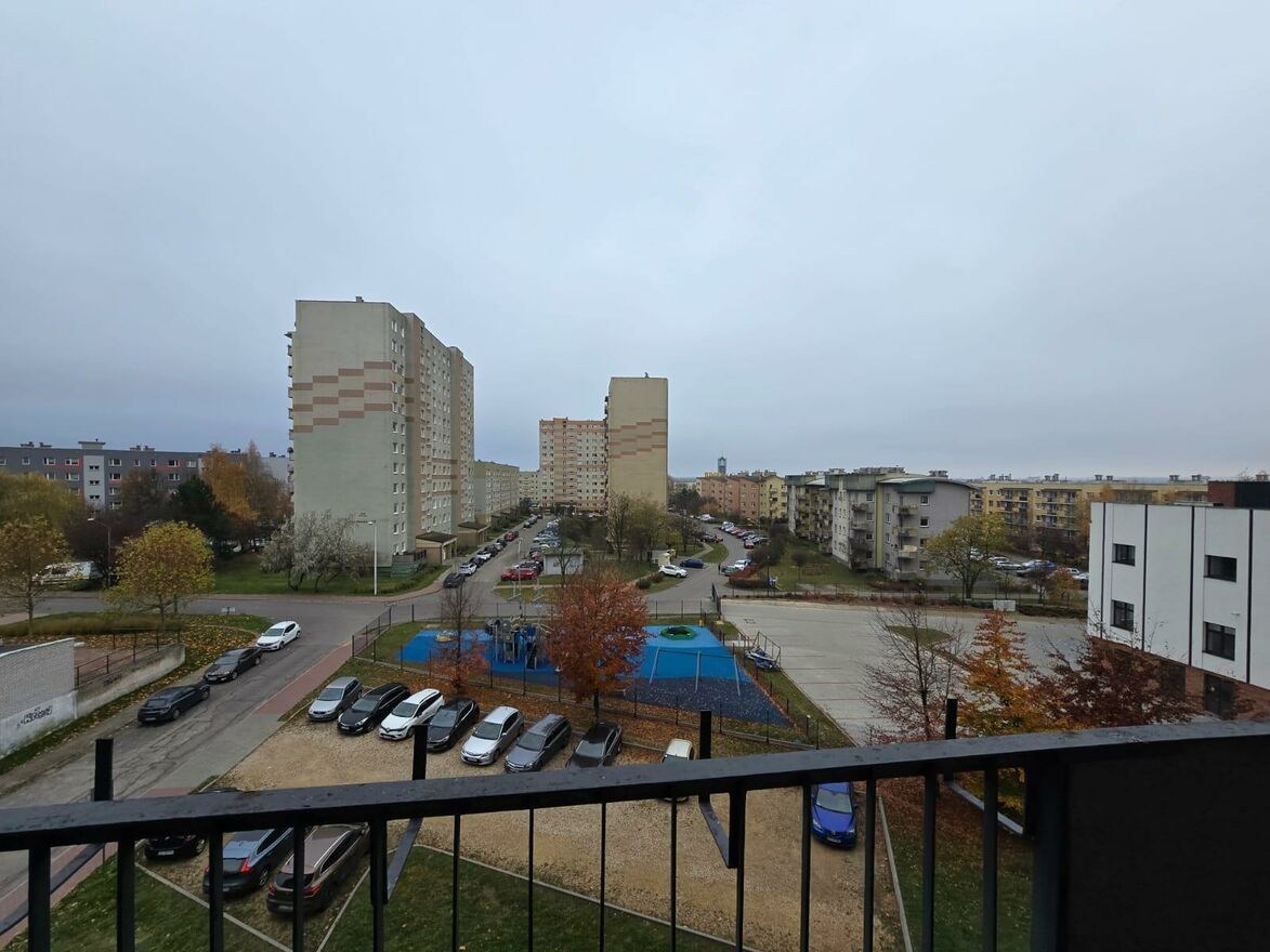 Dodatkowym atutem jest duży balkon, z którego rozpościera się przyjemny widok na okolicę.
