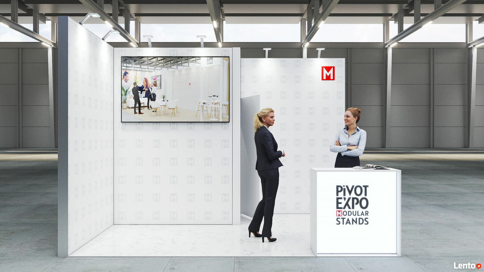 Modułowe Stoisko Targowe 3×4 m – zabudowa narożna z zapleczem - mobilne stoisko targowe wielokrotnego użytku.Oferuję do sprzedaży profesjonalne stoisko targowe o wymiarach 3×4 m w systemie modułowym. Zabudowa narożna, wykonana z lekkich, aluminiowych profili z tekstylnym wypełnieniem – nowoczesny wygląd i łatwy montaż bez narzędzi.