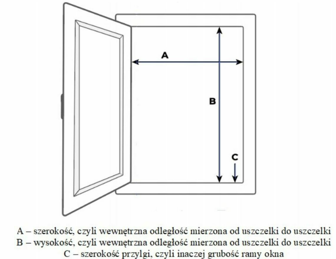 * musisz również wiedzieć, że mierzymy tak zwane „światło” okna, czyli odległość od uszczelki do uszczelki przy otwartym oknie, jeśli wolisz inaczej – od wewnętrznego rantu okna do wewnętrznego rantu okna, wzdłuż i w poprzek