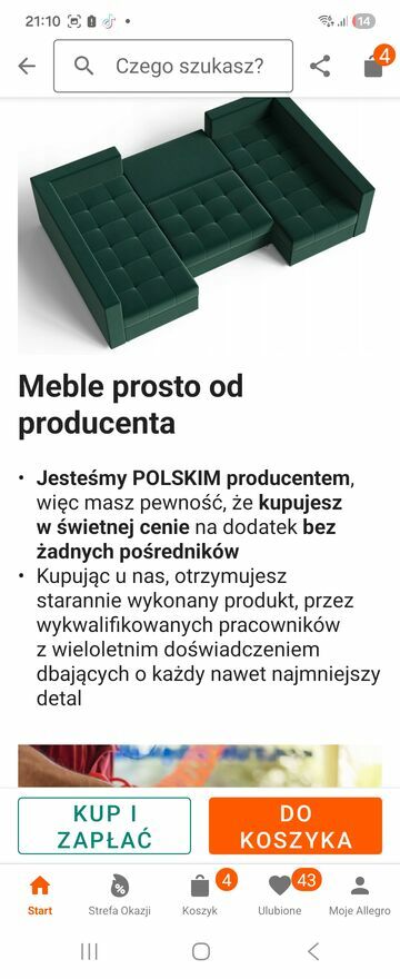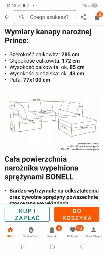 - Kategoria: Meble / Łóżka, wersalki i sofy