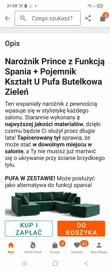 OkazjaNarożnik z funkcją spania I dużą pufą ma kilka miesięcy jest w idealnym stanie