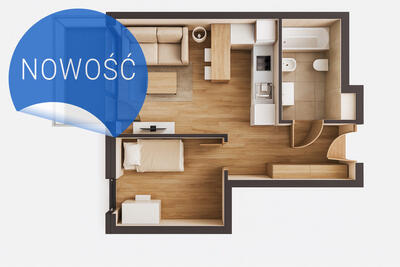 Mieszkanie na poddaszu, MIKROKAWALERKA. Składa się z salonu z aneksem kuchennym z oknem i miejscem na szafę lub półki. ...
