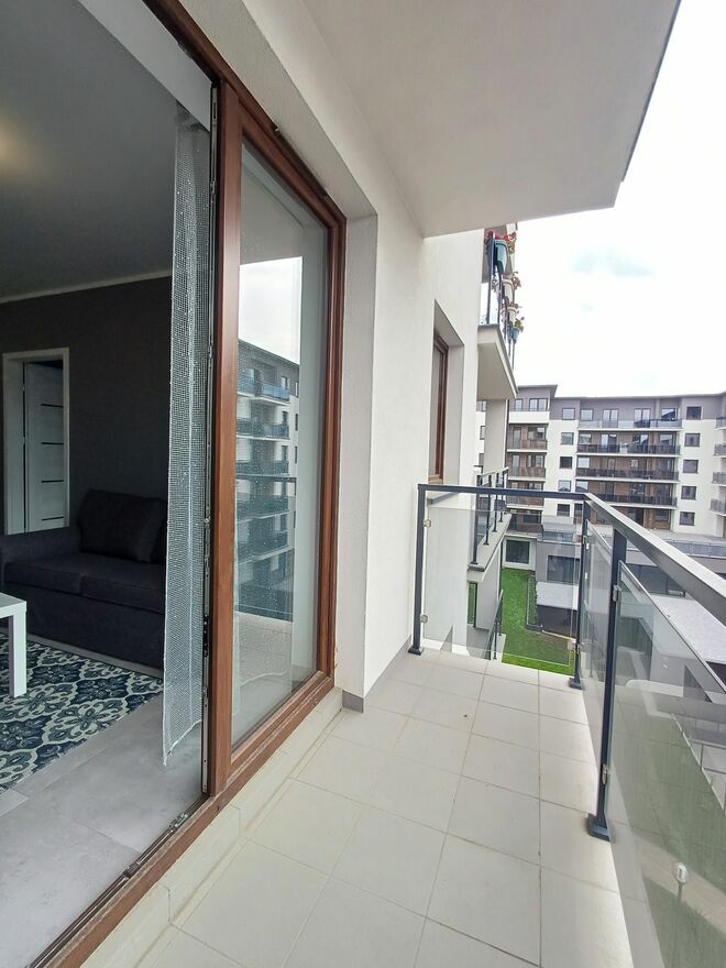 - 40m², salon z kuchnią, sypialnia, garderoba, łazienka, balkon (duży)