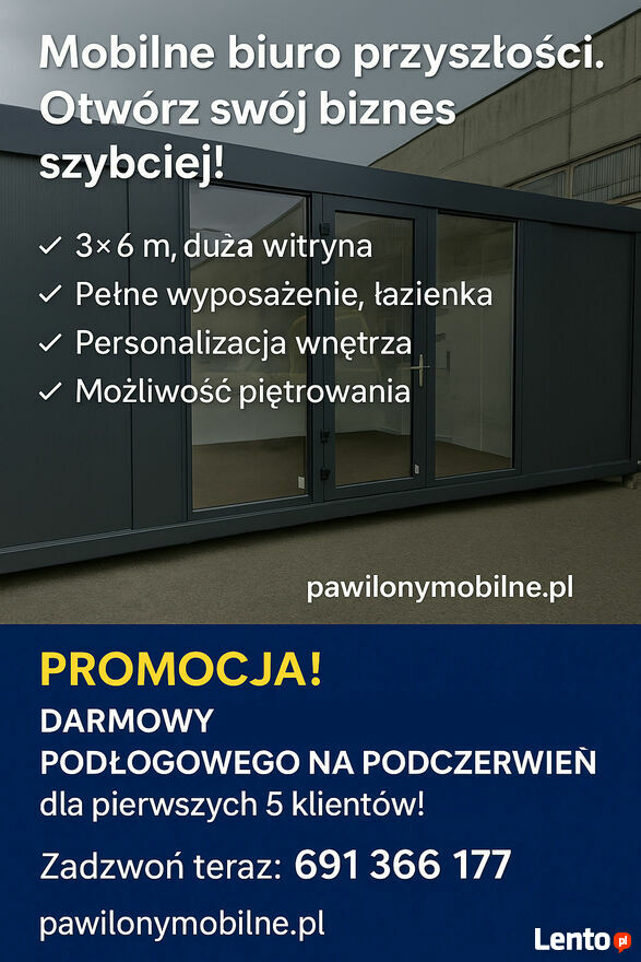 Ogłoszenie OLX – wersja rozbudowanaPawilon Kontener Mobilny Biurowy / Mieszkalny / Socjalny 3x6 m – PRODUCENT | PROMOCJA