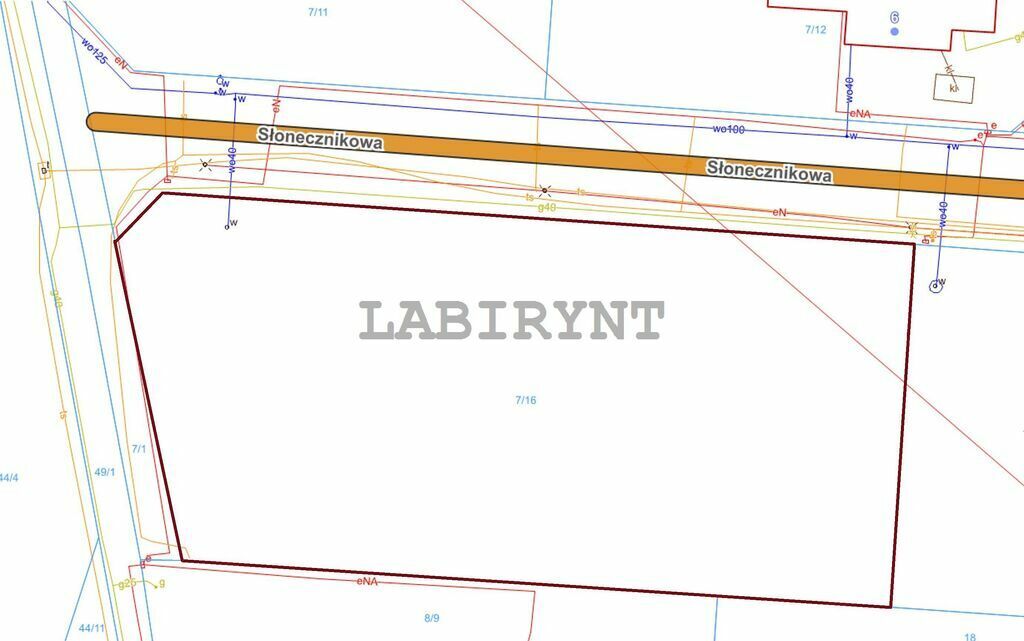 Nad północno-wschodnim narożnikiem działki, przebiega linia