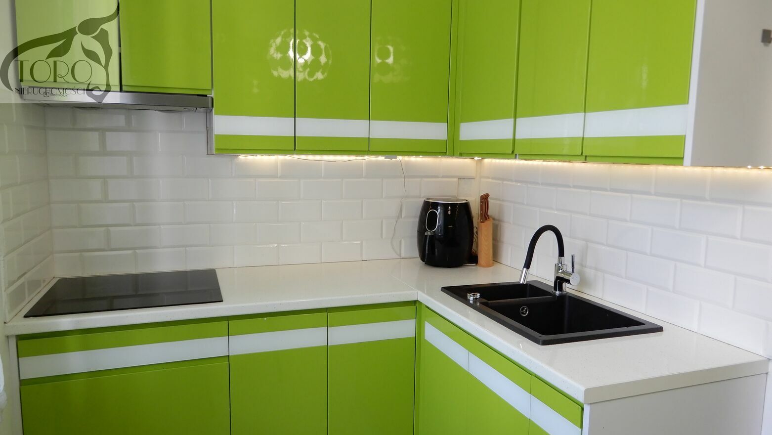 - kuchni (na ścianach glazura i karton-gipsy, podwieszany sufit, na podłodze panele, meble na wymiar na wysoki połysk w zabudowie z płytą indukcyjną, piekarnikiem i okapem, około 9,5m2)