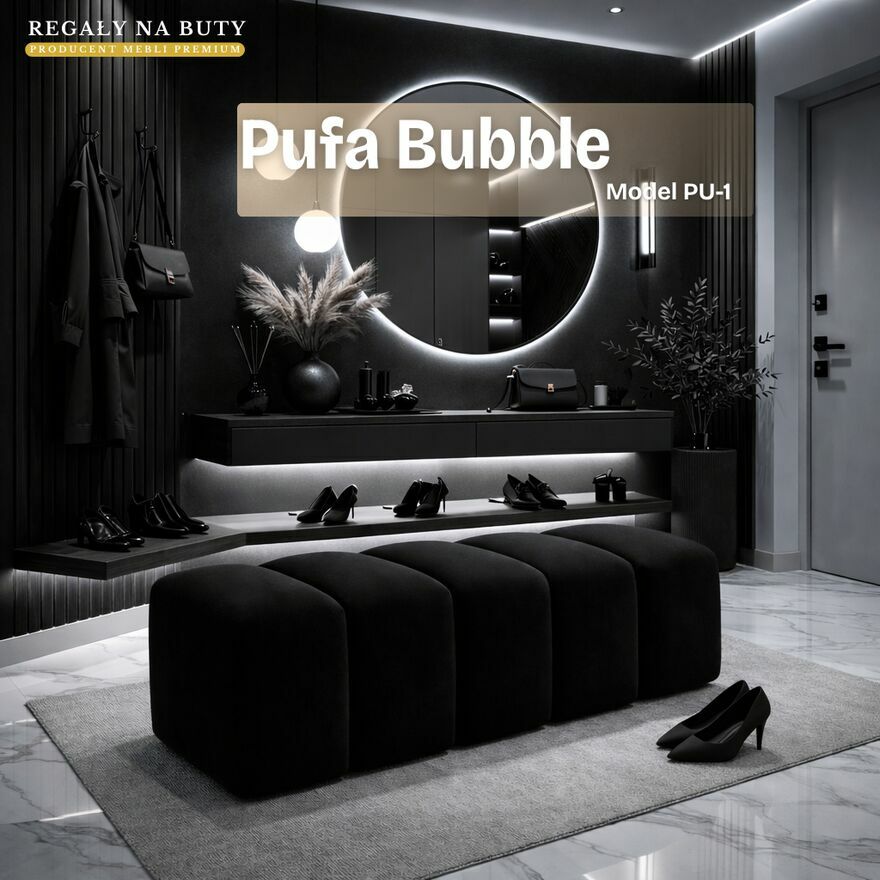 Pufa tapicerowana Bubble Czarna – elegancja i komfort w nowoczesnym wnętrzuPufa tapicerowana Bubble Czarna to propozycja dla osób, które cenią subtelną elegancję, wysoką jakość wykonania i ponadczasowy design. Model ten doskonale odnajduje się w aranżacjach modern chic, soft glamour, minimalistycznych oraz klasycznych.