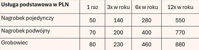 Zakres usług: • Sprzątanie i pielęgnacja grobów – czyszczenie pomników, grabienie, usuwanie chwastów, wymiana ...