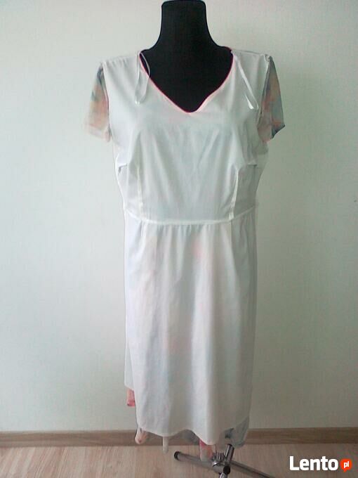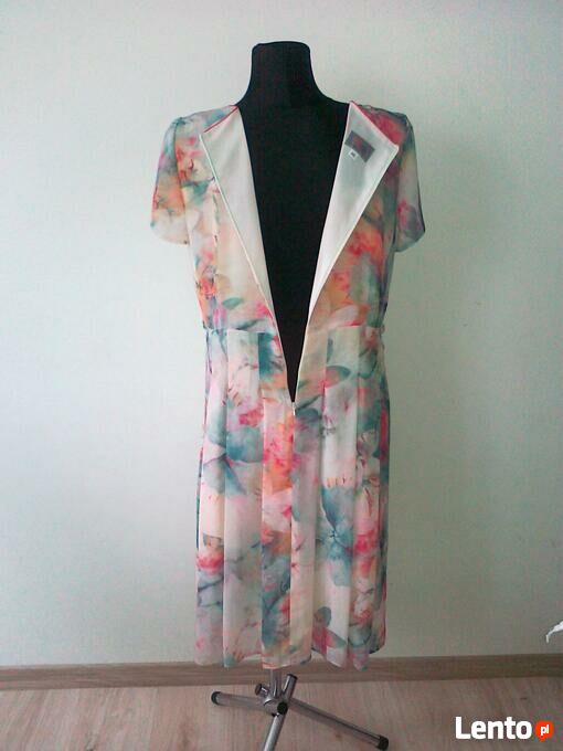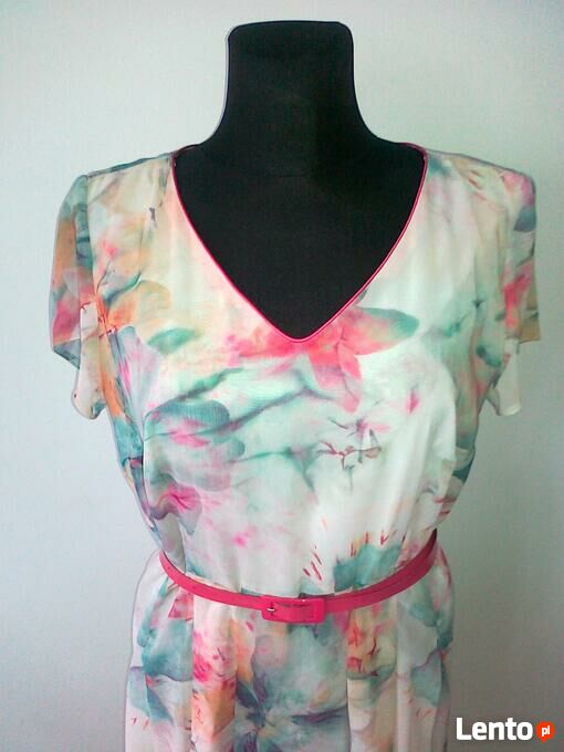 SprzedamSukienka z szyfonu na podszewce, marki Nella collection; rozmiar 46, dł. całkowita 106 cm, pachy 2x54/56 cm, talia 2x46/48 cm, biodra 2x54/56+ cm.