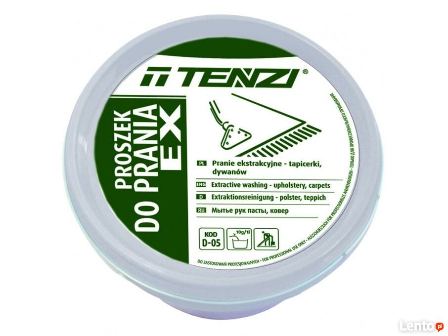 Tenzi EX 0,5kg - proszek do prania dywanów z dodatkiem enzymów i aktywnego tlenu. Skutecznie usuwa plamy z kawy, herbaty oraz inne zanieczyszczenia pochodzenia organicznego.