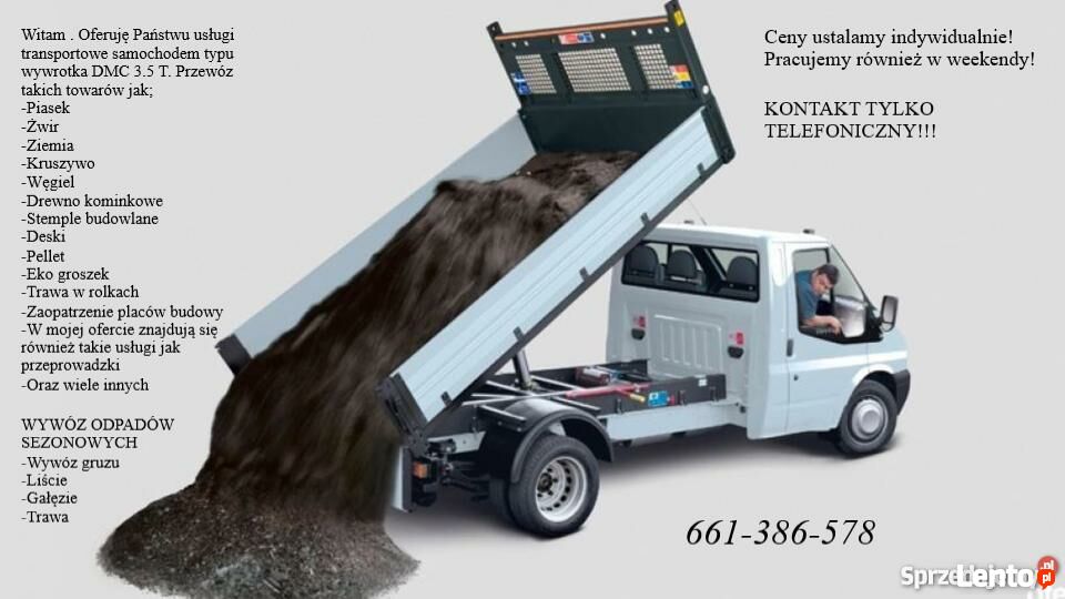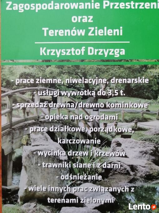 Witam. Zajmujemy się pielęgnacją terenów zieleni, jak również świadczymy usługi wywrotką do 3,5 t. Wykonujemy między innymi: - koszenie trawników/również dużych powierzchni - przycinanie żywopłotów - wertykulacje trawnika - opryski chwastobójcze - prace działkowe, porządkowe, karczowanie - trawniki siane i z darni - sprzedaż drewna/drewno kominkowe - nasadzenia roślin ozdobnych - wycinka drzew i krzewów - prace ziemne, niwelacyjne, drenarskie i wiele innych prac związanych z terenami zielonymi Prace wykonujemy na terenie całego województwa śląskiego, łódzkiego i opolskiego. Bezpłatna wycena, atrakcyjne ceny. Zapraszamy do kontaktu pod nr tel. 661 - pokaż numer telefonu -Sprawdź zainteresowanie tym ogłoszeniem